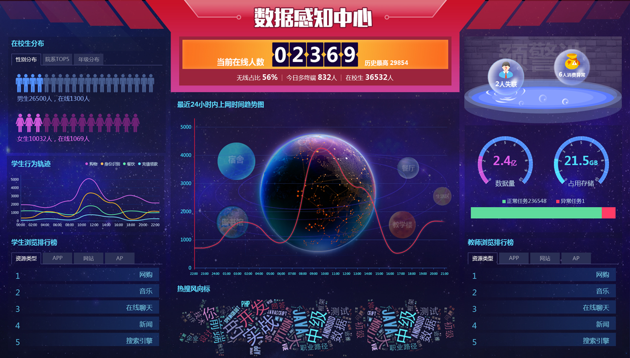 实时了解学生行为动态及在校生属性分布,为管理提供支持